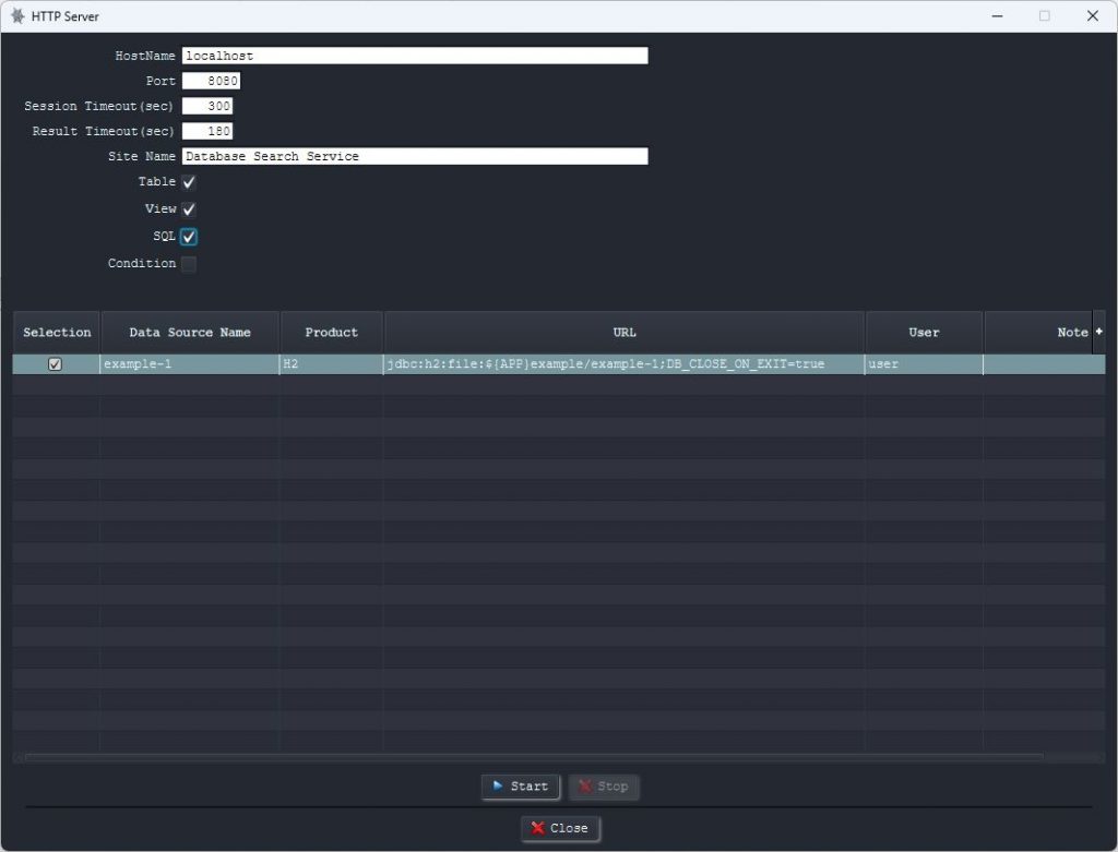 内臓のHTTPサーバーにより、ブラウザ用のDB検索機能を提供します