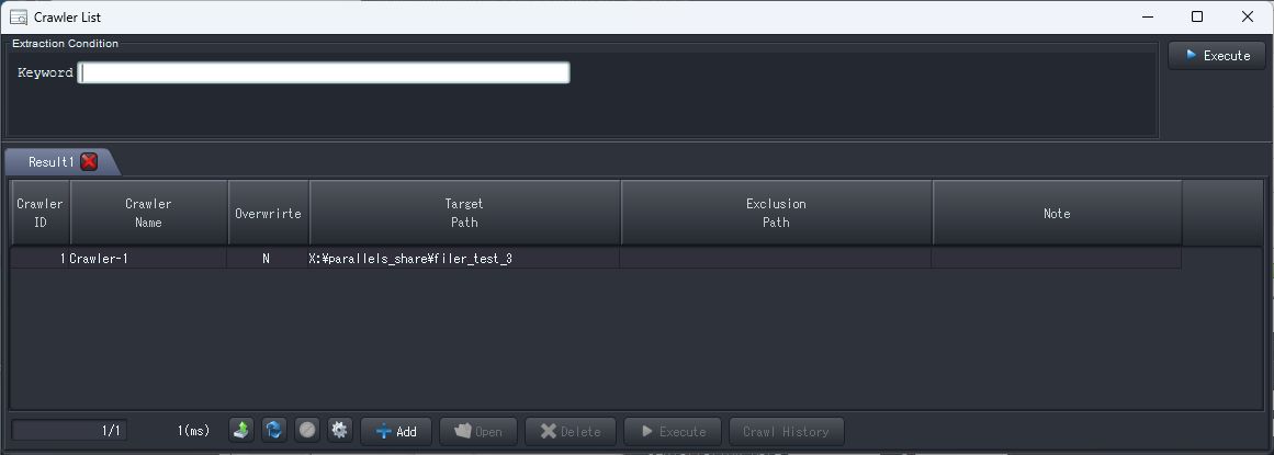 7) Autoをチェックしていない場合は「Execute」ボタン押下により、クロールを実行します。