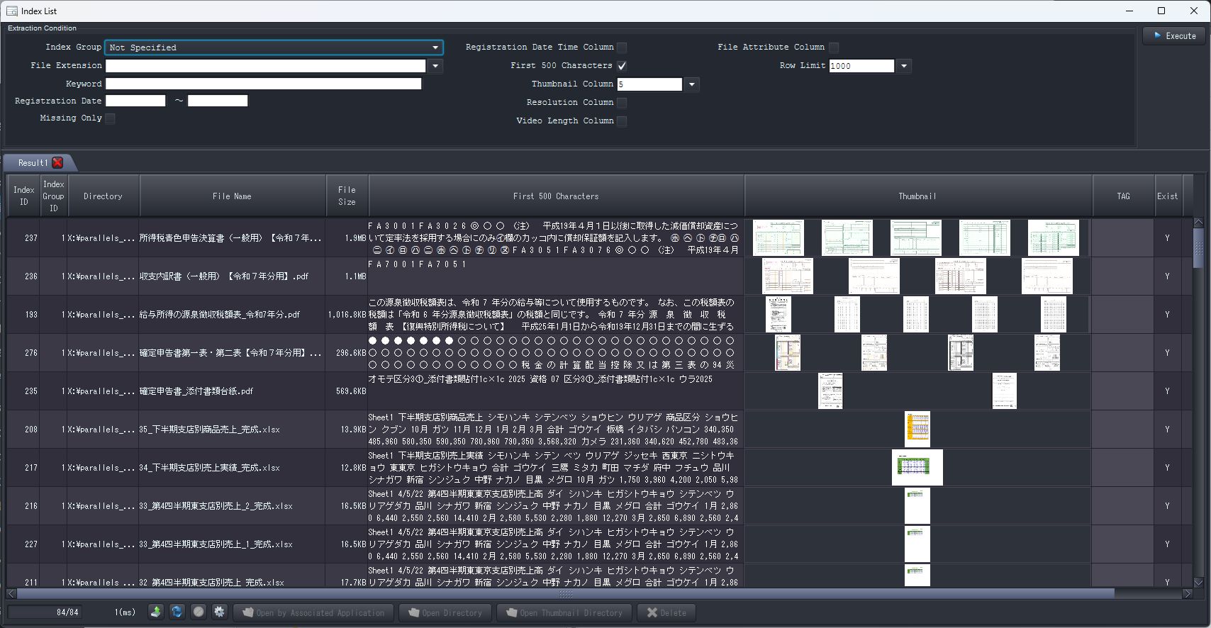 項目名 設定内容 備考 Priority 優先順位を昇順で設定。ゼロ以下は無効となります。 デフォルト=100 File Size ファイルサイズの範囲をKBで設定。ゼロ以下は制限対象となりません。 Glob 対象のファイルをGLob形式で設定します。 Index Registration インデックス登録する場合はチェックします。 Timeout インデックス登録後の2次処理(サムネイル作成など)のタイムアウト(秒)を設定します。ゼロ以下はタイムアウト無効となります。 デフォルト=180
