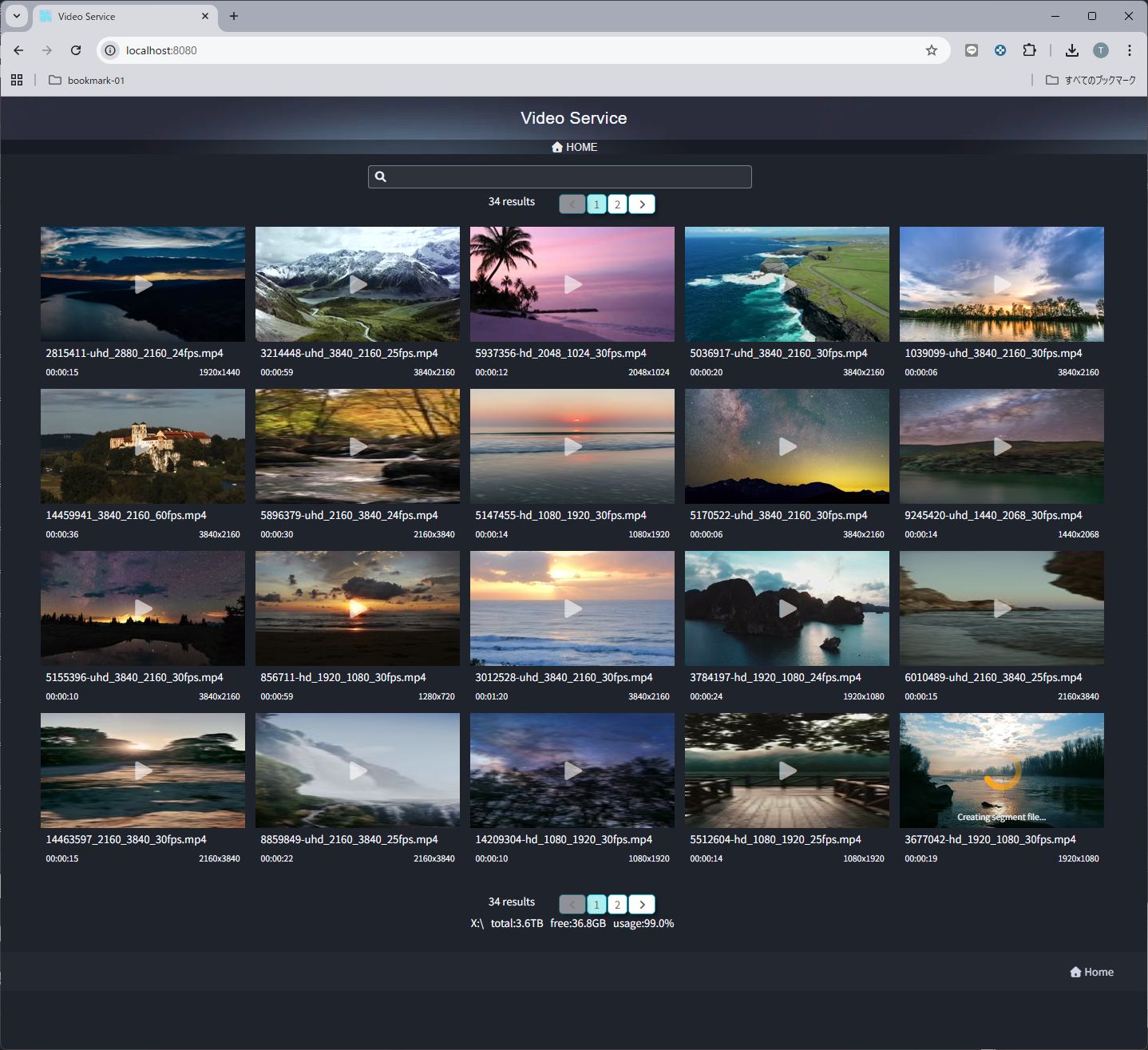 インデックス登録されたファイルをWEBブラウザにて検索、閲覧する事が出来ます。動画ファイルはHLS形式に変換され、ストリーミングによる視聴が出来ます。