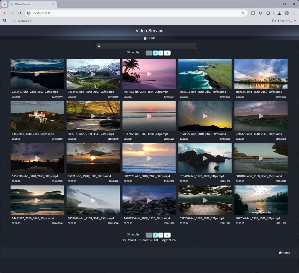WEB ブラウザによる動画検索と鑑賞(HLSストリーミング対応)