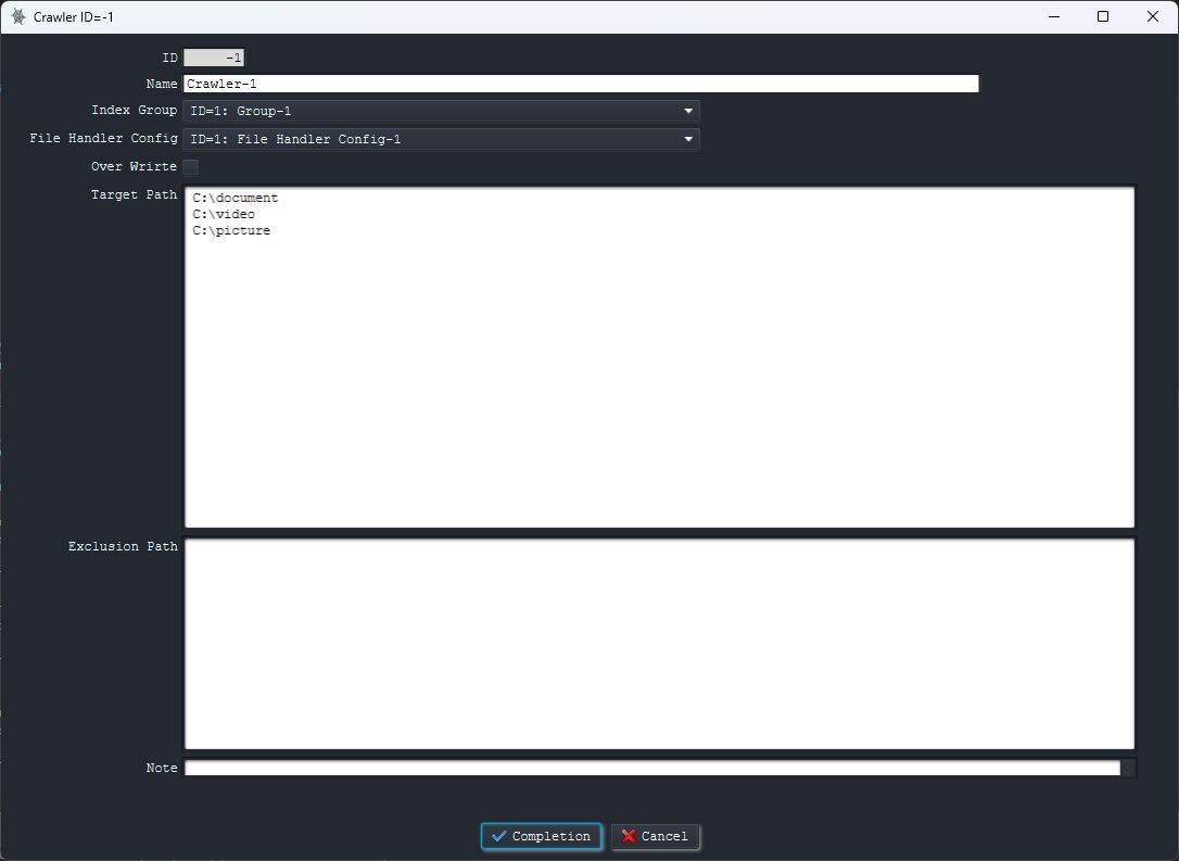 クロール対象のディレクトリ、ファイルのパスを設定します。複数の場合は改行して記述します。