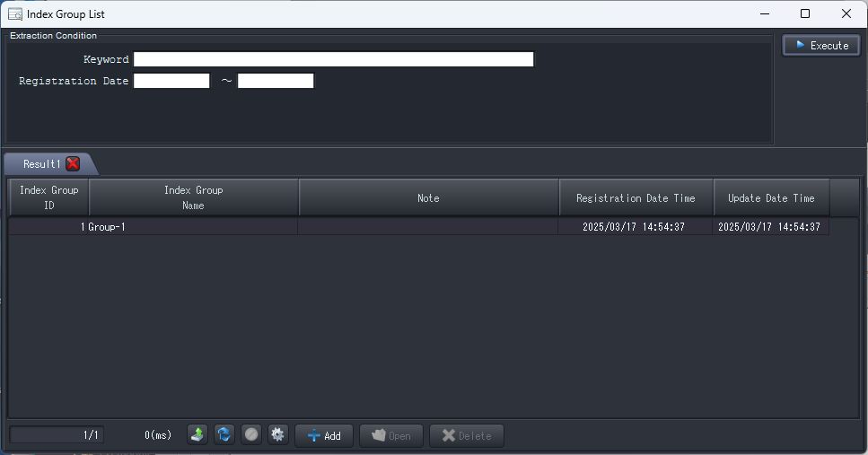 インデックスグループはファイルインデックスをグループ化するための項目です。